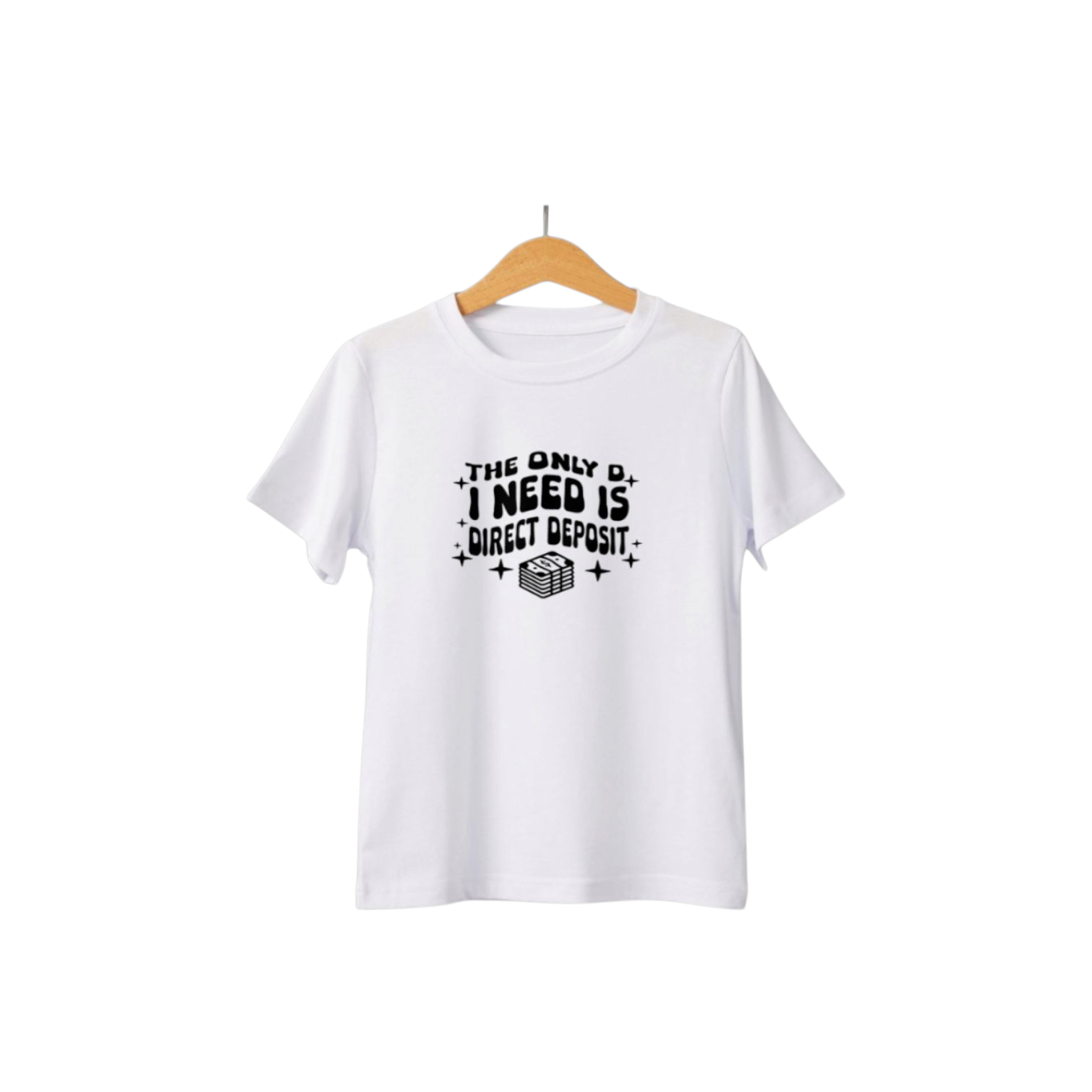 Direct deposit, a saying in these time and ages. 100%cotton. Unisex. Color mark is the color of the Tee shirt