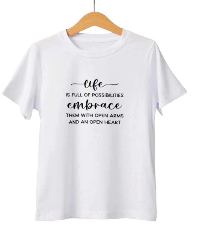 Possibilities. 100%cotton. Unisex. Color mark is the color of the Tee shirt.